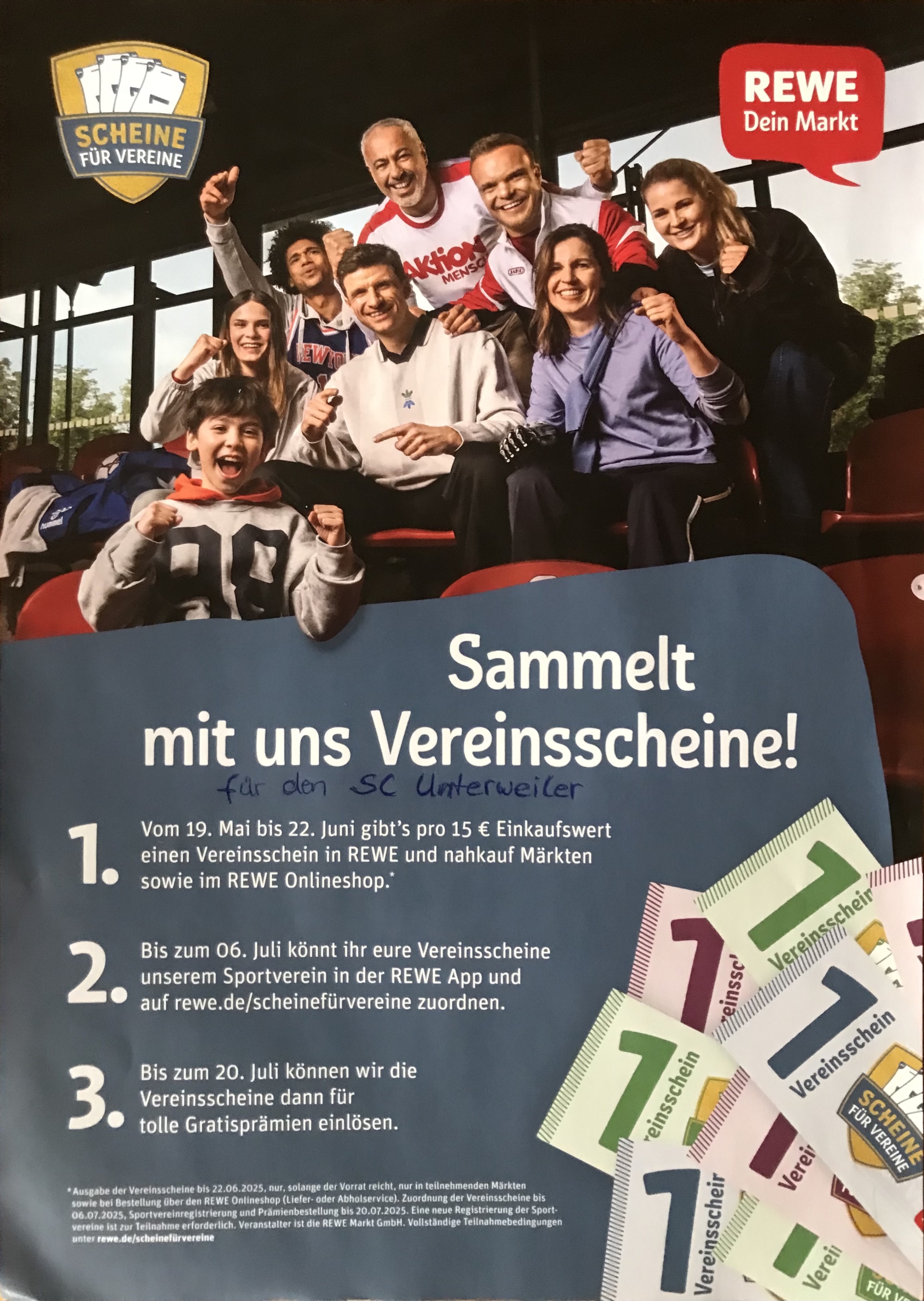 Es ist wieder soweit. Es gibt Scheine Für Vereine. News 9. Mai 2025 Mitmachen und den SC-Unterweiler unterstützen. share: