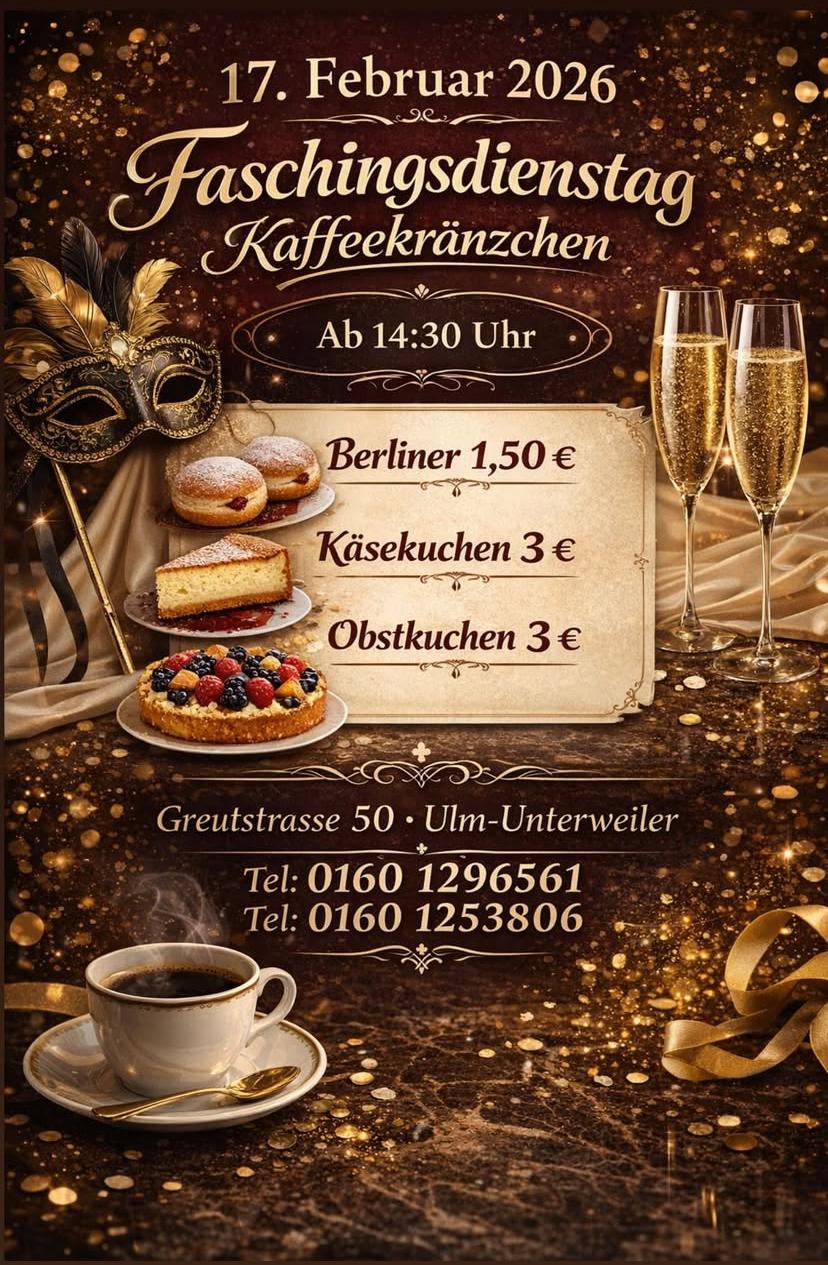 am 17.02.2026 ab 14:30 Uhr im Sportheim. Es gibt Kaffee und Kuchen und natürlich auch deftiges vom Pächter.